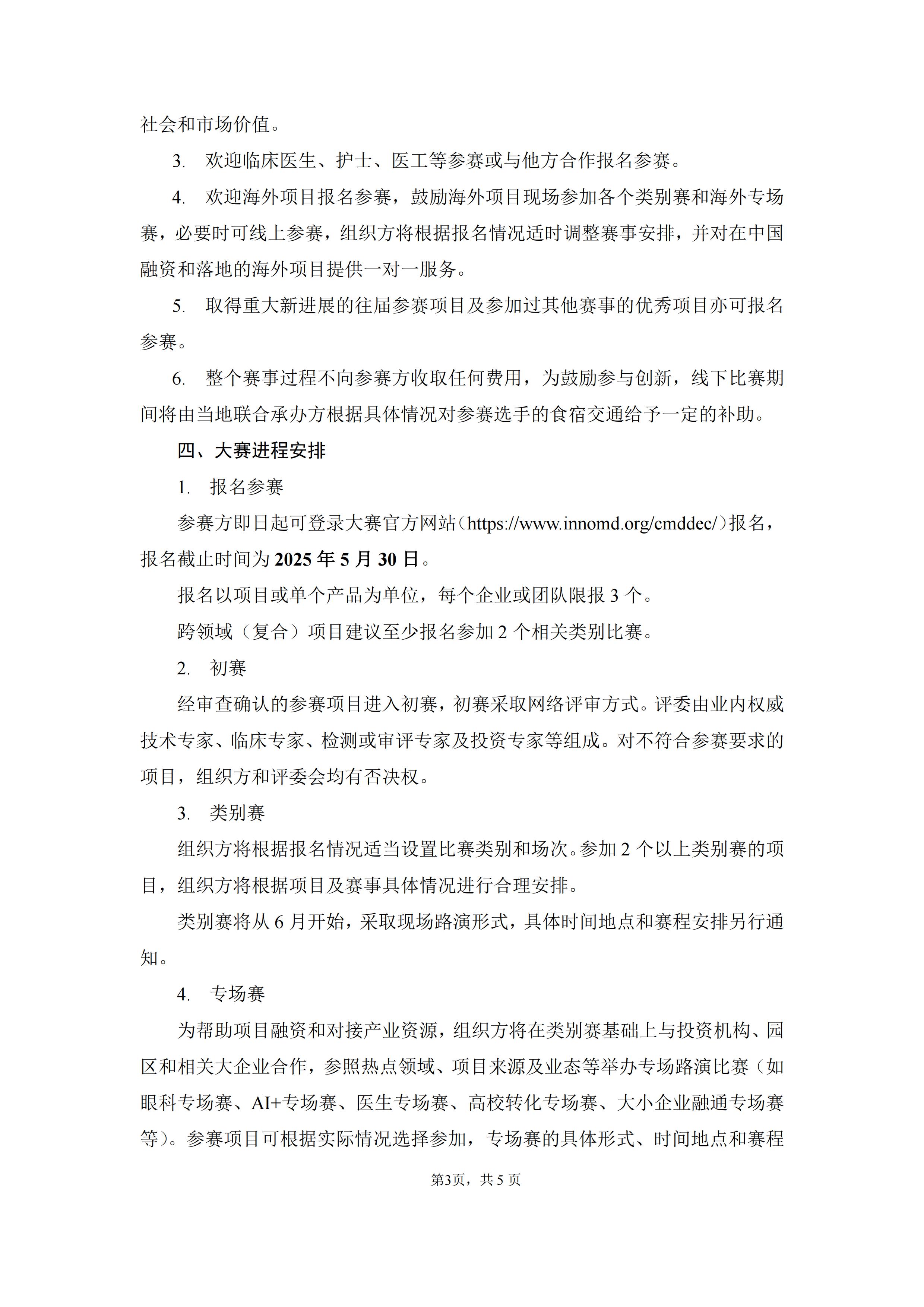 参赛方即日起可登录大赛官方网站(医疗器械创新网网://lkzbw.com/cmddec/)报名,报名截止时间为2025年5月30日。